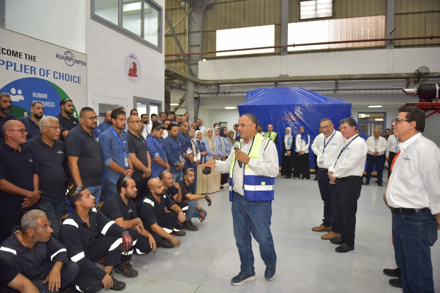 كما شدد المهندس صلاح عبد الكريم على دعم الهيئة الكامل لشركة روهربمبن مصر باعتبارها أحد الأذرع الصناعية المهمة في مجال المضخات، موجّهًا الشكر إلى جميع العاملين والإدارة على النجاحات المتحققة وجودة المنتجات، مطالبًا بالاستمرار في مسيرة النجاح وتعظيم المنتج المحلي.