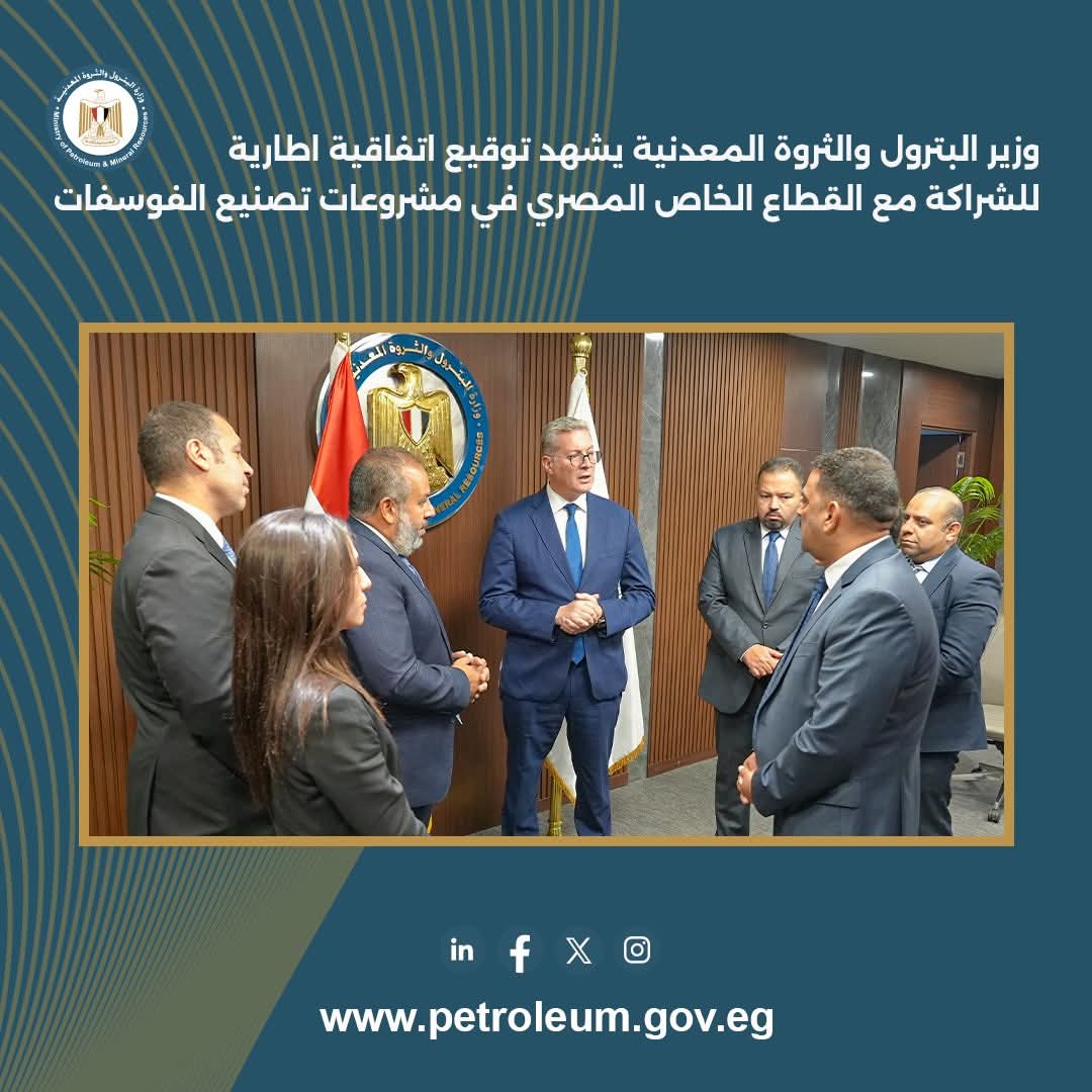 وأكد المهندس كريم بدوي أن المشروع الجديد لإنتاج حمض الفوسفوريك يُعد تجسيدًا حقيقيًا لتعظيم القيمة المضافة من الخامات التعدينية المصرية، ويعكس توجه الوزارة نحو الشراكة مع القطاع الخاص، بما يسهم في دفع عجلة الاقتصاد المصري، وتلبية الاحتياجات المحلية من الأسمدة، وزيادة الصادرات.
