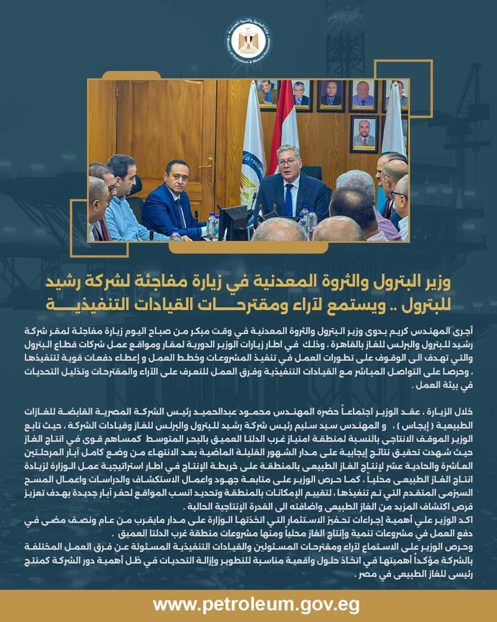 • مصدر الخبر: الصفحة الرسمية لوزارة البترول و الثروة المعدنية