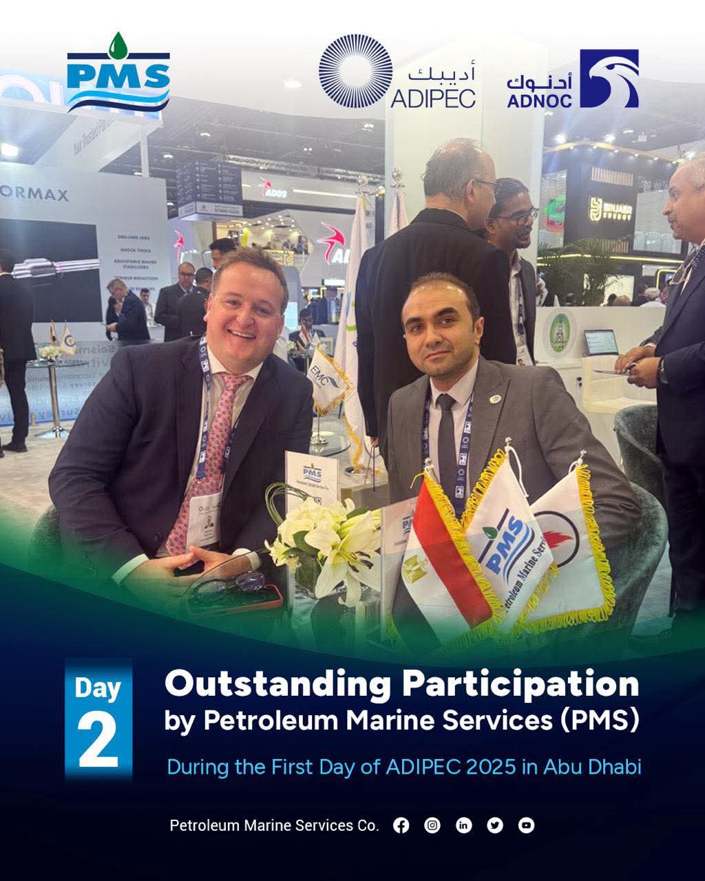تواصل شركة خدمات البترول البحرية (PMS) مشاركتها المتميزة ضمن جناح وزارة البترول والثروة المعدنية المصرية في معرض ومؤتمر أديبك الدولي 2025، والمقام في العاصمة الإماراتية أبوظبي، وسط إقبال واسع من الزوار وممثلي الشركات العالمية والإقليمية المهتمين بالتعرف على القدرات المتطورة للشركة ومشروعاتها في مجالات الإنشاءات والخدمات البحرية.