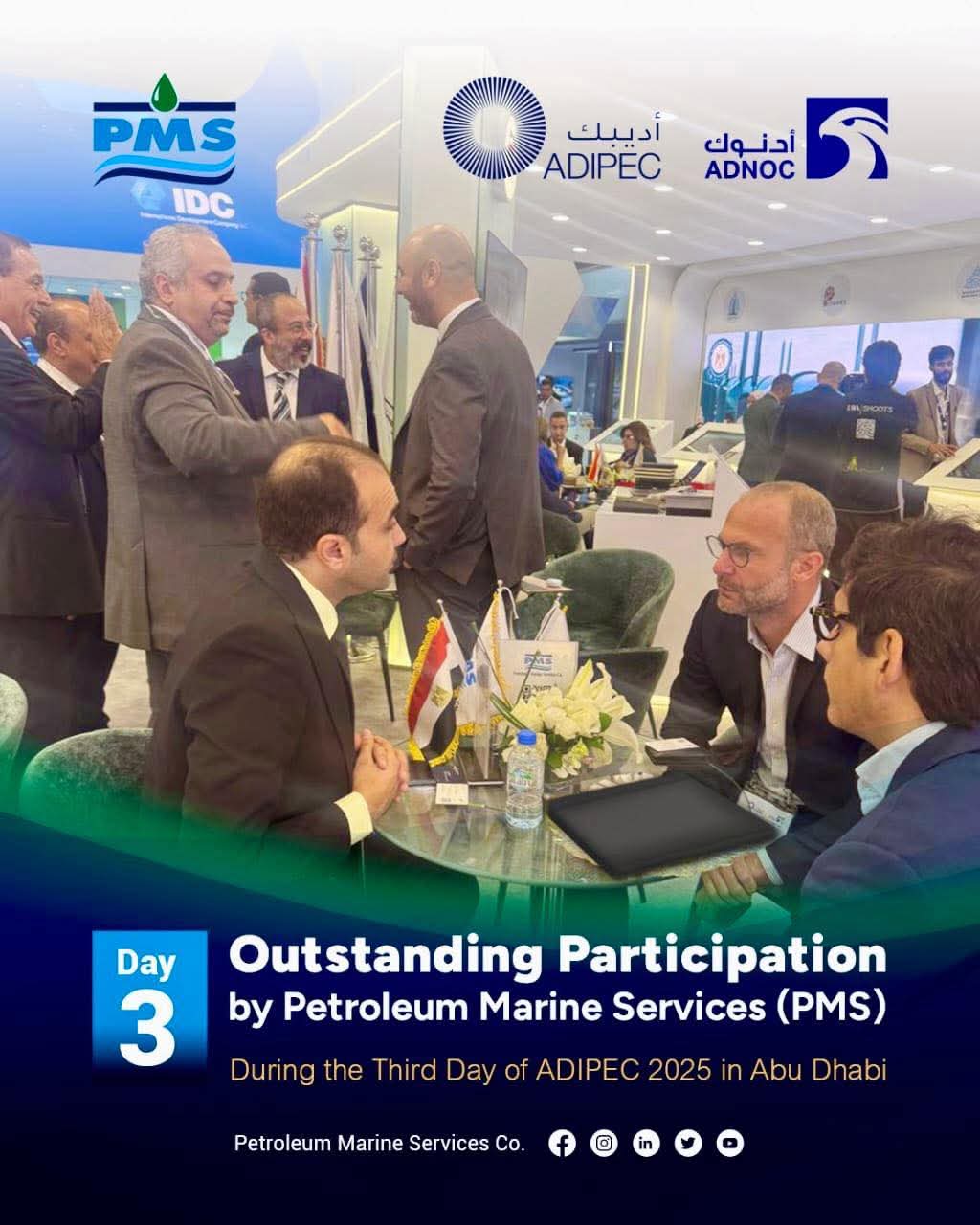وتؤكد خدمات البترول البحرية (PMS) من خلال مشاركتها الفاعلة في أديبك 2025 التزامها المستمر بتعزيز الشراكات الإقليمية والدولية، ومواصلة دورها الريادي في تقديم حلول متكاملة لتطوير قطاع الطاقة والبنية التحتية البحرية في مصر والمنطقة.