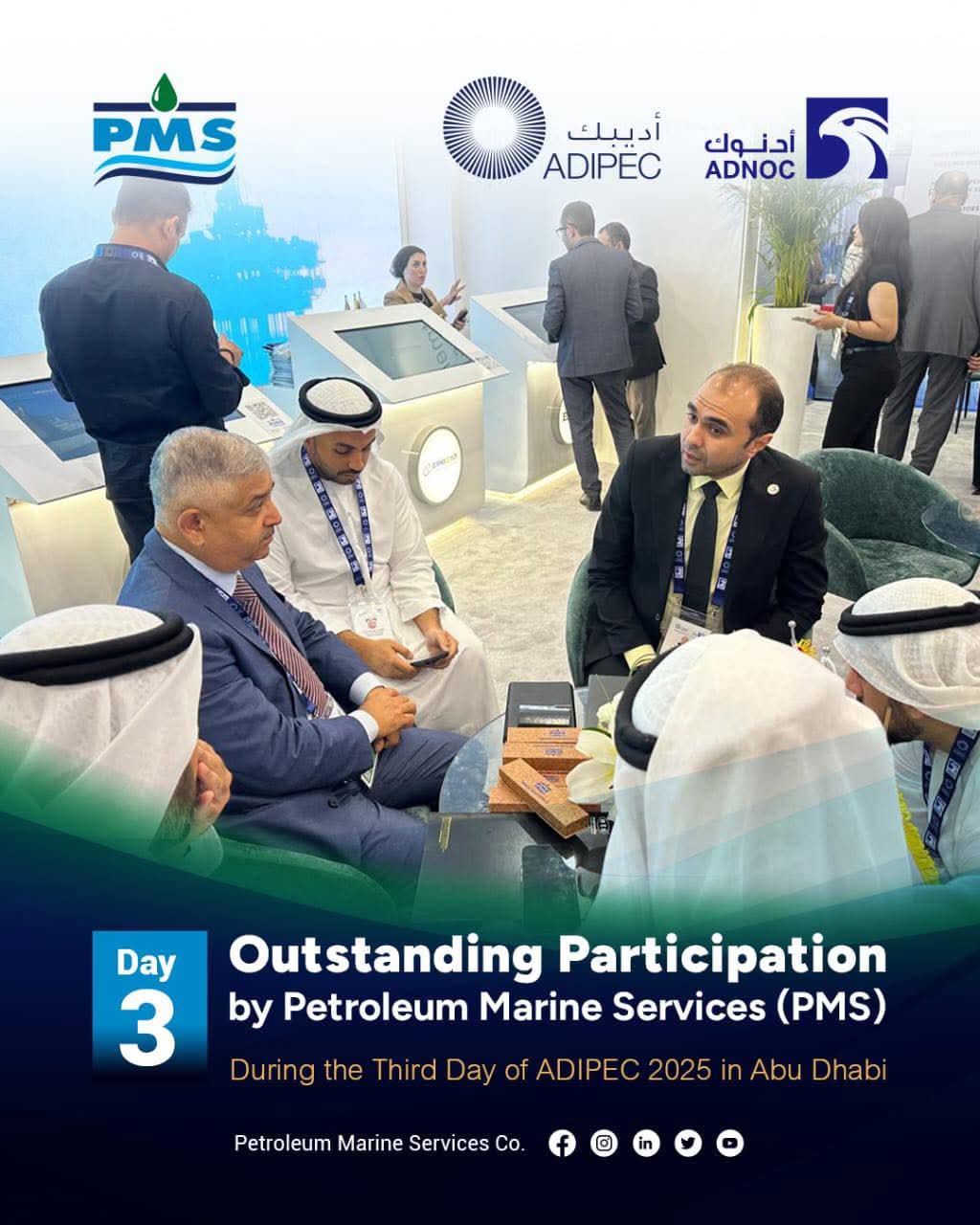 وفي إطار خطتها الاستراتيجية للتوسع الإقليمي وتعزيز تواجدها الدولي، عقدت PMS لقاءً موسعًا مع ممثلي شركة بترول أبوظبي الوطنية (أدنوك)، جرى خلاله بحث فرص التعاون والشراكات المستقبلية داخل دولة الإمارات، وذلك تماشيًا مع توجه الشركة لافتتاح فرع جديد لها في الدولة، بما يدعم توسعها في مشروعات الطاقة والبنية التحتية البحرية وتعزيز وجودها في الأسواق الخليجية.