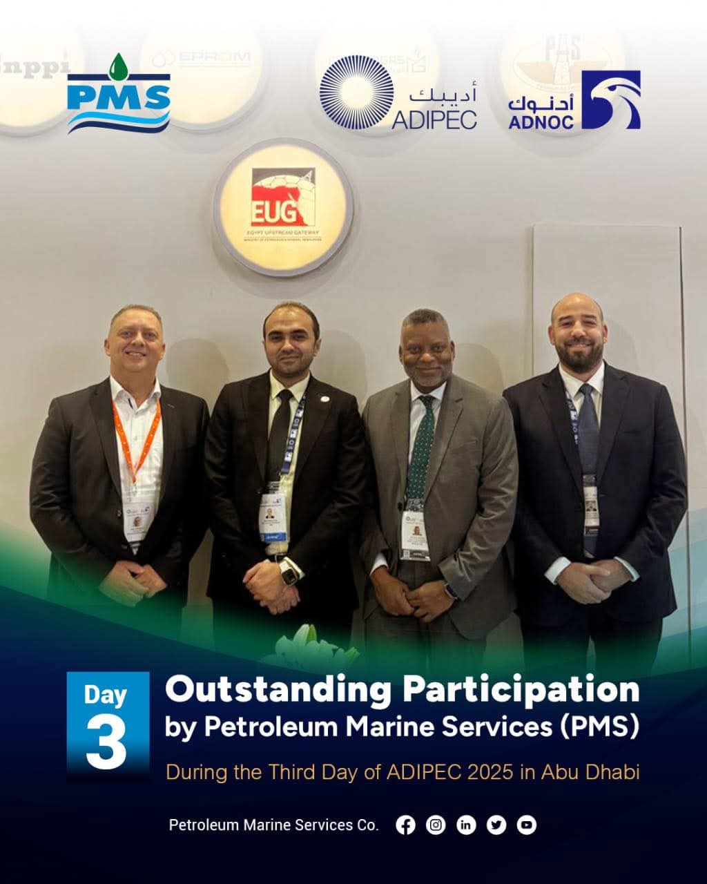 وتؤكد خدمات البترول البحرية (PMS) من خلال مشاركتها الفاعلة في أديبك 2025 التزامها المستمر بتعزيز الشراكات الإقليمية والدولية، ومواصلة دورها الريادي في تقديم حلول متكاملة لتطوير قطاع الطاقة والبنية التحتية البحرية في مصر والمنطقة.