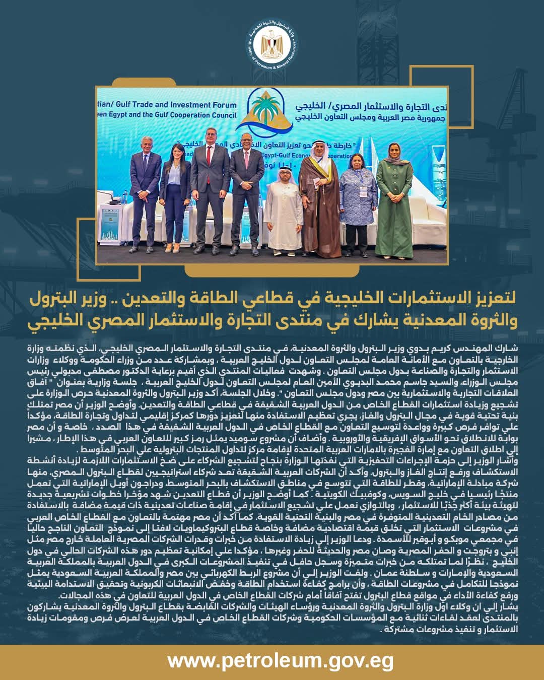 • مصدر الخبر: الصفحة الرسمية لوزارة البترول و الثروة المعدنية