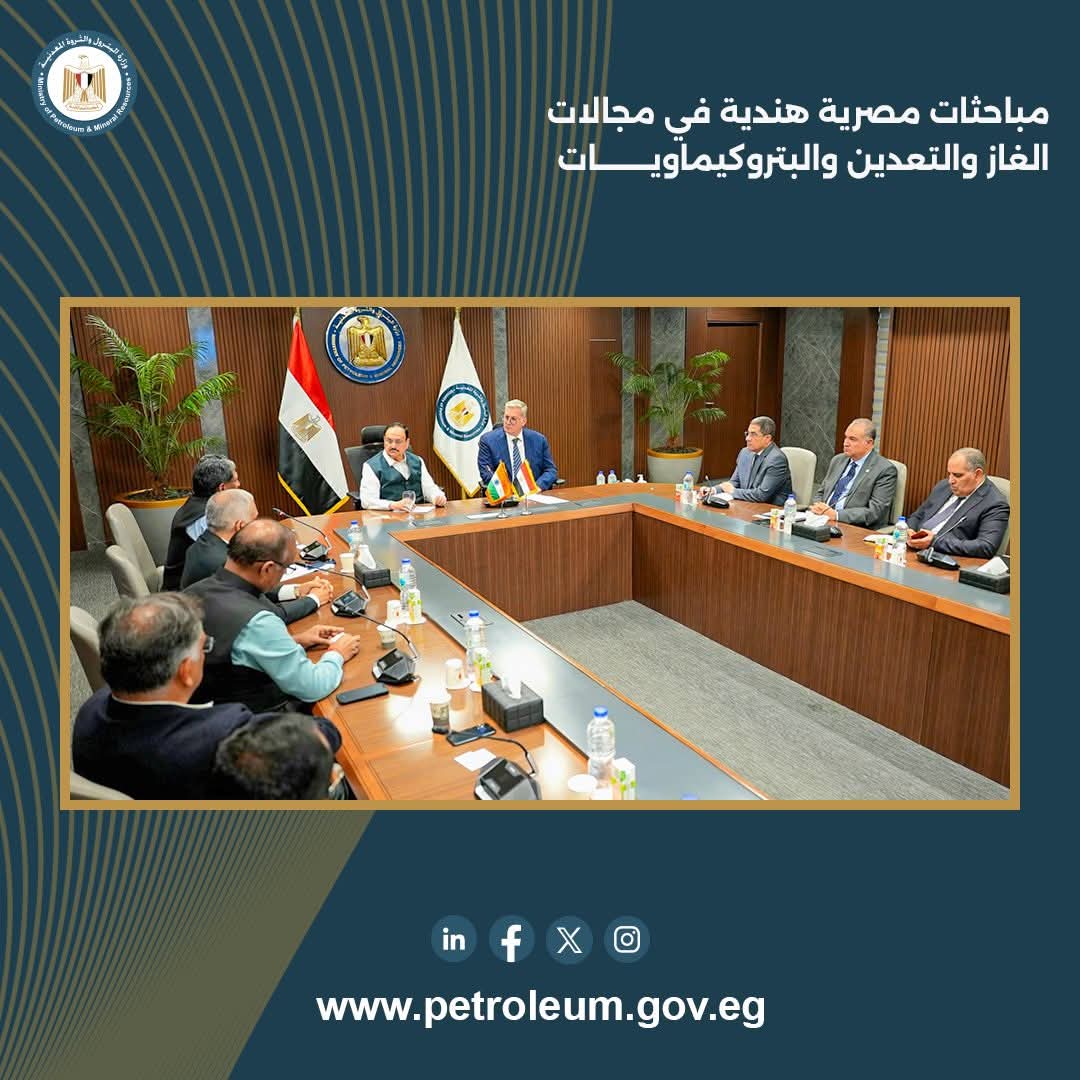 من جانبه، أكد الوزير الهندي حرص بلاده على تعزيز التعاون مع مصر، خاصة في مجال البتروكيماويات والأسمدة الفوسفاتية، في ظل مساعي الهند لضمان أمنها الغذائي، مشيرًا إلى اعتزام الشركات الهندية زيادة التعاون مع شركات قطاع البترول المصري، وبحث مجالات تعاون إضافية.