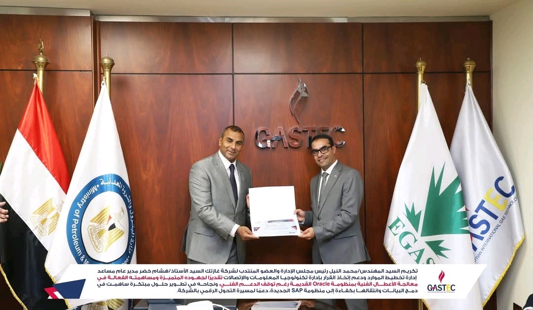 قام المهندس محمد النيل رئيس مجلس الإدارة والعضو المنتدب لشركة غازتك، بتكريم العاملين المتميزين بإدارتي تكنولوجيا المعلومات والاتصالات والشئون المالية بالشركة، وذلك تقديرًا لجهودهم في حل الأعطال الفنية بمنظومة “أوراكل” وتطوير حلول مبتكرة ساهمت في إنجاز عملية التحول إلى منظومة “SAP” بنجاح.