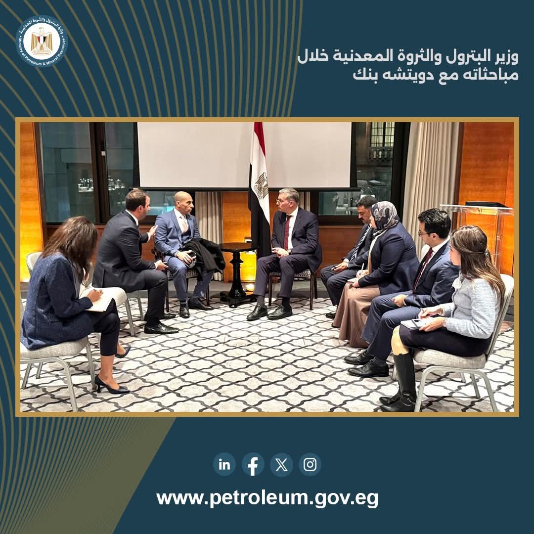 وأكد الوزير على التزام الحكومة بتحديث مناخ الاستثمار التعديني بما يتوافق مع المعايير الدولية وأفضل الممارسات التشغيلية، وإزالة العقبات التقليدية أمام شركات الاستكشاف وتعزيز تنافسية مصر عالمياً، كما استعرض الطرفان خبرات دويتشة بنك في آليات تمويل المشروعات، والشراكات، والخدمات المالية، بما يسهم في جذب المستثمرين الأجانب وتحسين إدارة الإيرادات والعوائد والاستثمارات الدولية بفعالية.