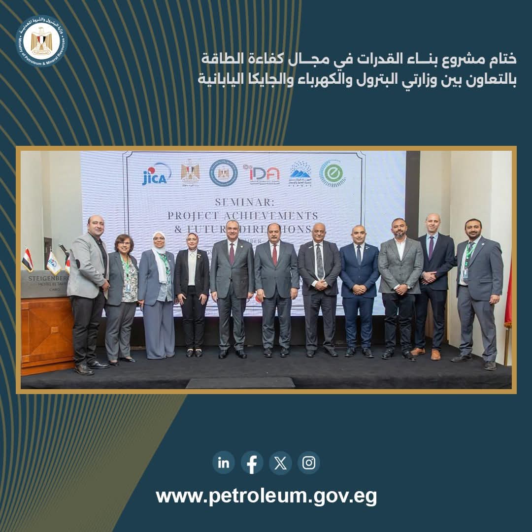 في إطار التعاون الاستراتيجي بين وزار البترول والثروة المعدنية والكهرباء والطاقة المتجددة ، والوكالة اليابانية للتعاون الدولي (جايكا)، اختتمت فعاليات مشروع “بناء القدرات في مجال كفاءة الطاقة وترشيدها”، والذي يأتي ضمن جهود تعزيز كفاءة استخدام الطاقة ودعم مستهدفات التحول الطاقي وفقاً لاستراتيجية الطاقة المستدامة 2040، وبرنامج الحكومة لخفض الانبعاثات وتحسين تنافسية القطاعات الإنتاجية.