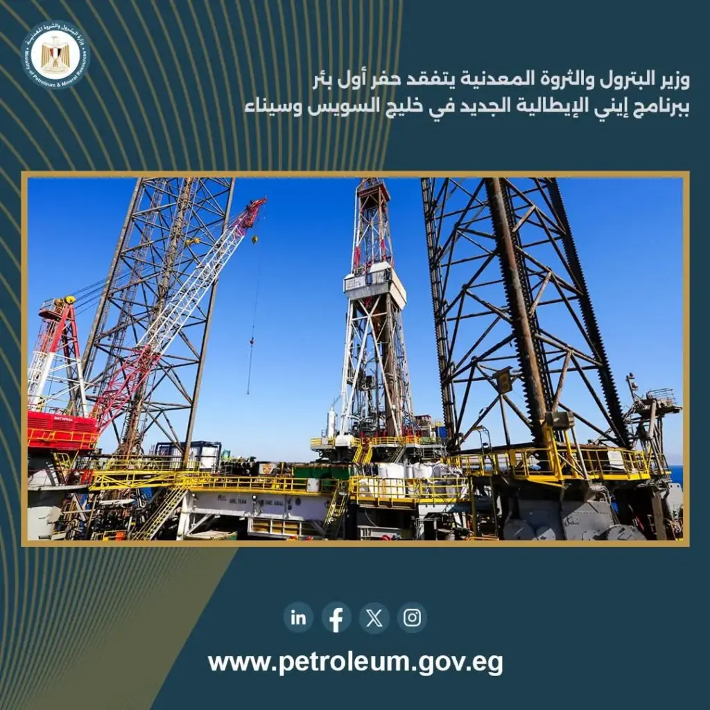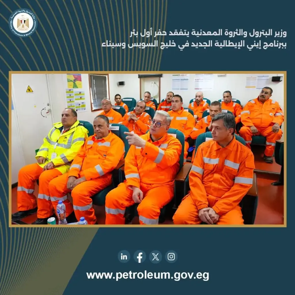 وزير البترول يتفقد حفر أول بئر ضمن برنامج إيني الاستثماري الجديد بخليج السويس وسيناء
