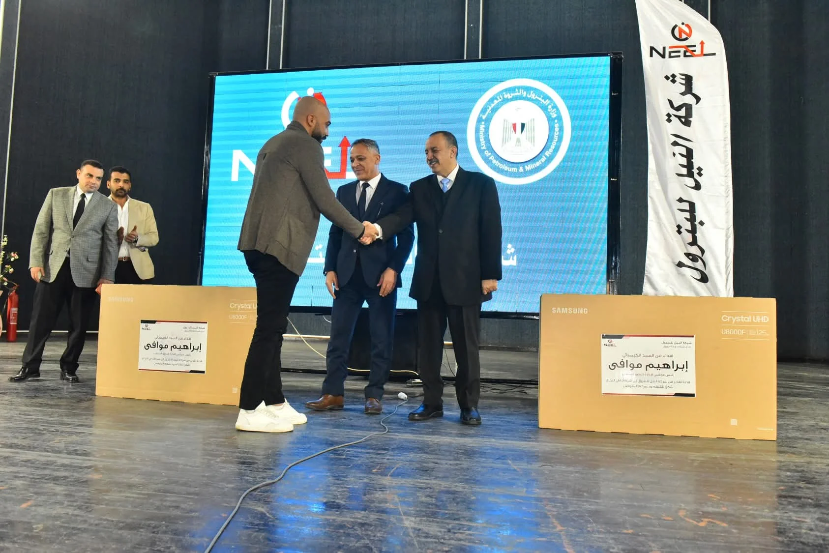 جاء ذلك بحضور الكيميائي إبراهيم موافي رئيس مجلس الإدارة والعضو المنتدب لشركة النيل للبترول، والمهندس محمود ناجي رئيس شركة أسيوط لتكرير البترول، وخالد محمد وكيل وزارة التموين، والدكتور حازم صلاح وكيل وزارة العمل، والمهندس عبد الرحيم أحمد وكيل وزارة الزراعة، والمهندس أحمد صلاح فخري مدير عام مديرية الطرق والنقل، ووليد جمال رئيس مركز ومدينة منفلوط، إلى جانب عدد كبير من وكلاء وعملاء وموزعي منتجات الشركة.