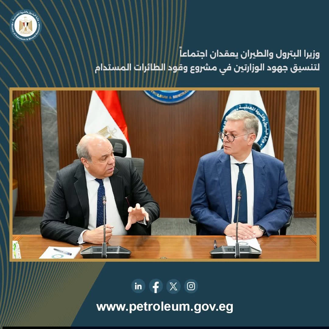 وزيرا البترول والطيران المدني يبحثان تنسيق الجهود لتنفيذ مشروع وقود الطائرات المستدام