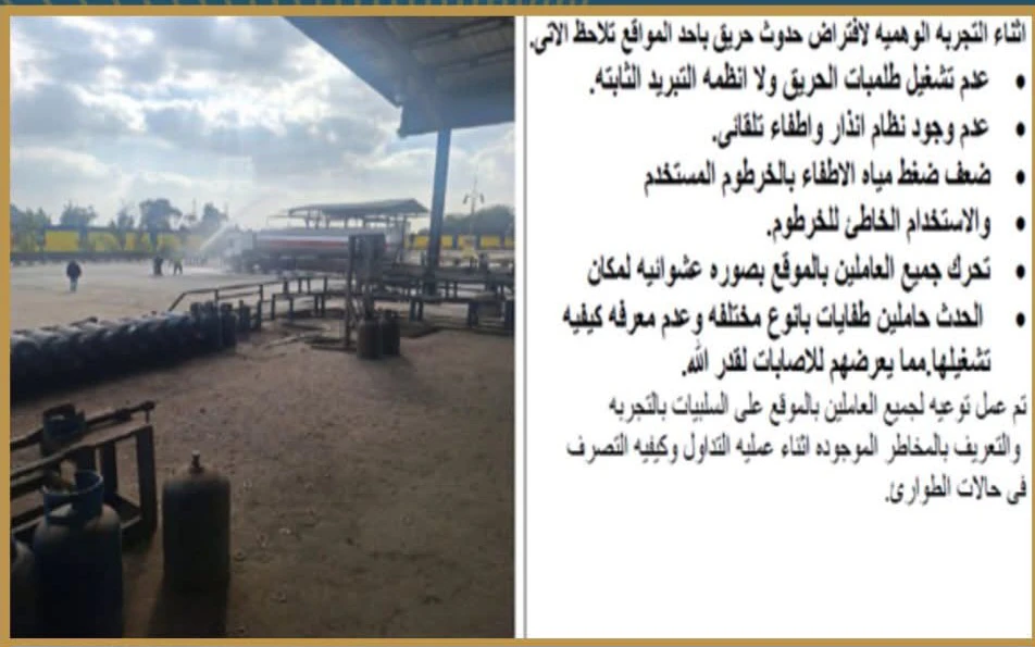 وفي إطار التفتيش على مصنع لتعبئة أسطوانات البوتاجاز بمركز أبو حماد بالشرقية، رصدت الحملة قصورًا في فرز الأسطوانات قبل التعبئة، وجود أسطوانات غير صالحة، وعدم تدريب العاملين على خطط الطوارئ.