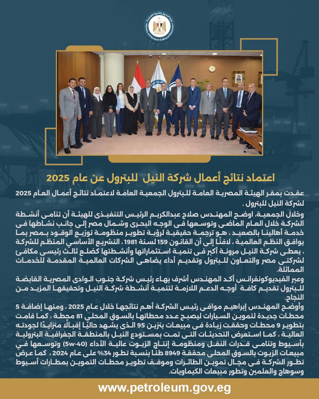 اعتماد نتائج أعمال شركة النيل للبترول عن عام 2025