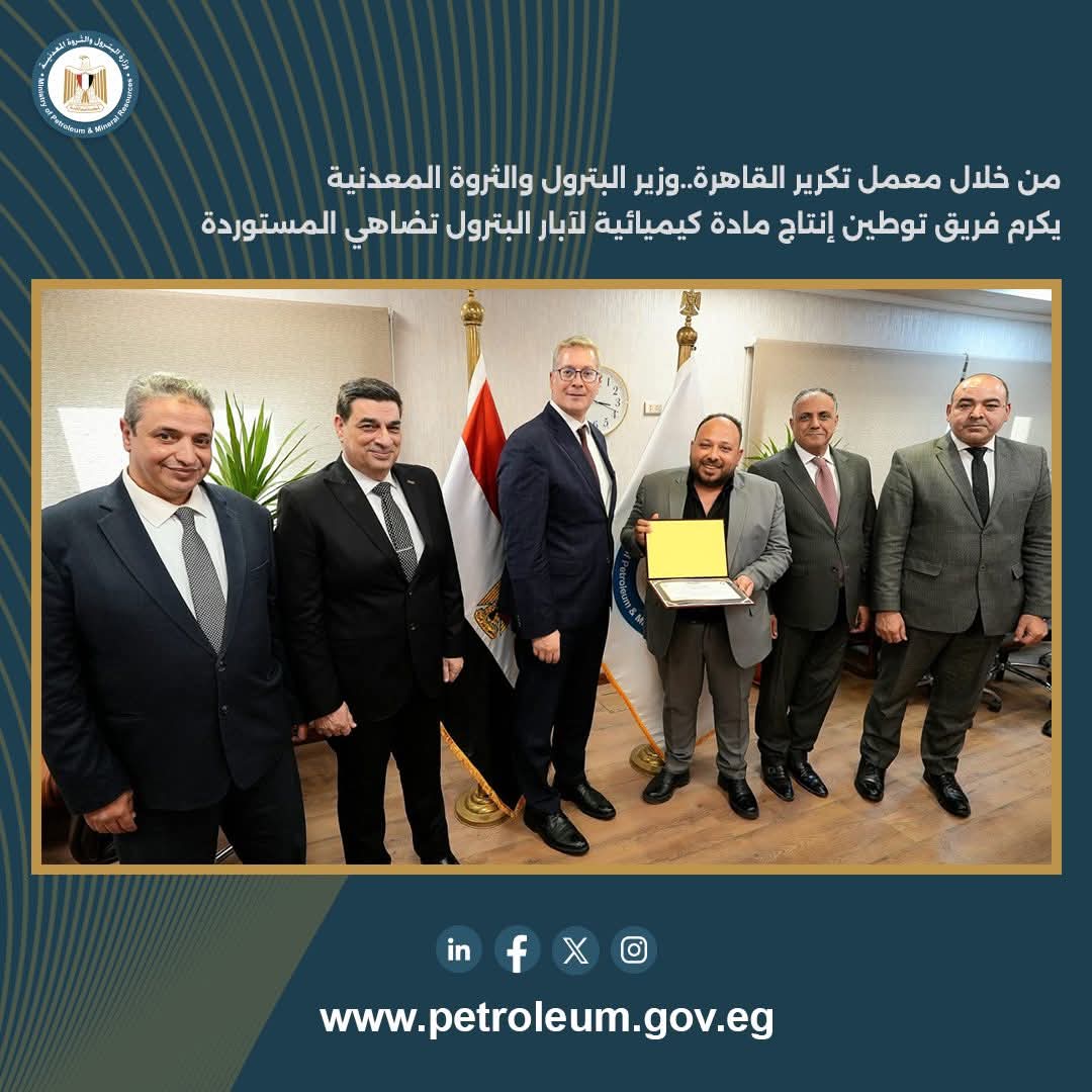 • مصدر الخبر: الصفحة الرسمية لوزارة البترول والثروة المعدنية