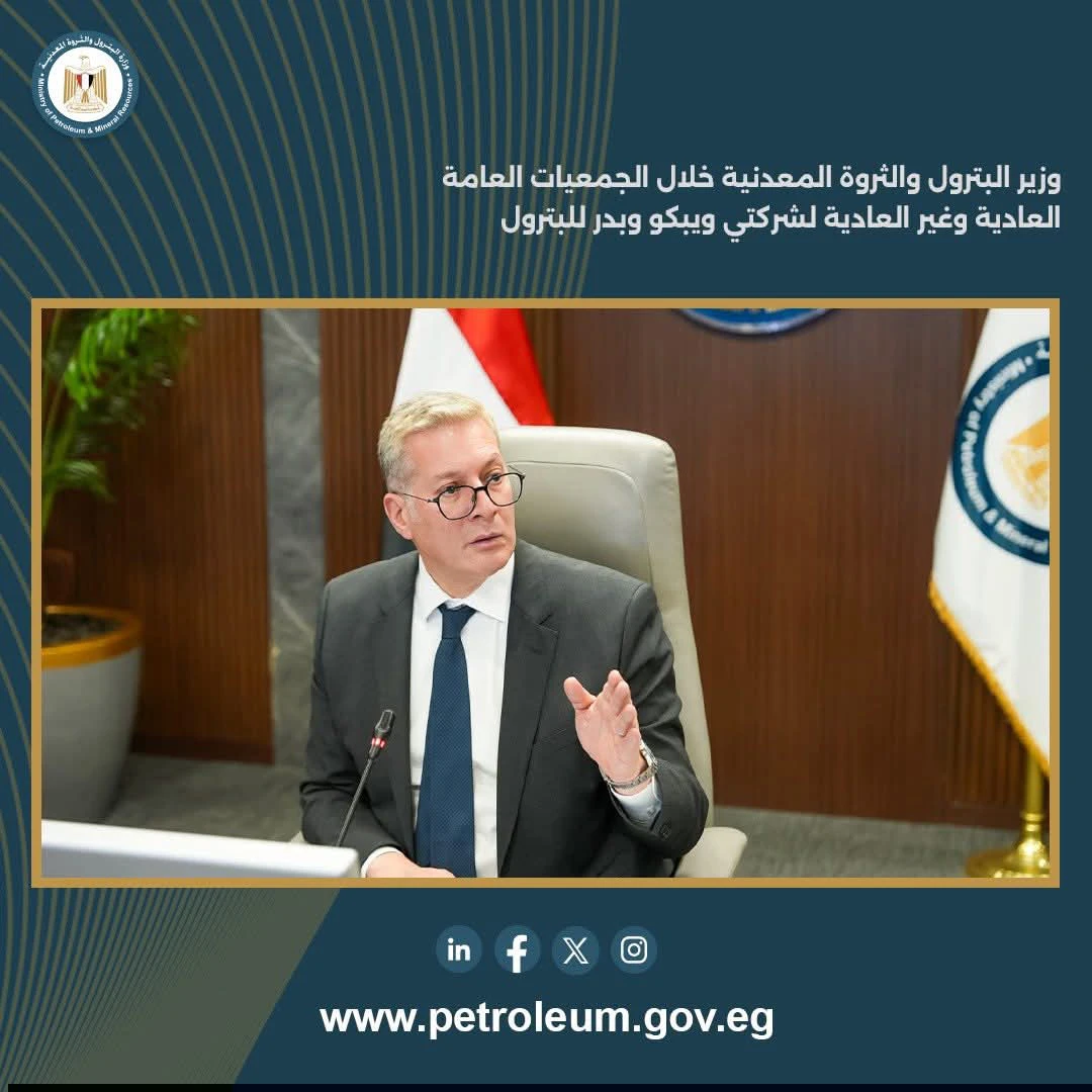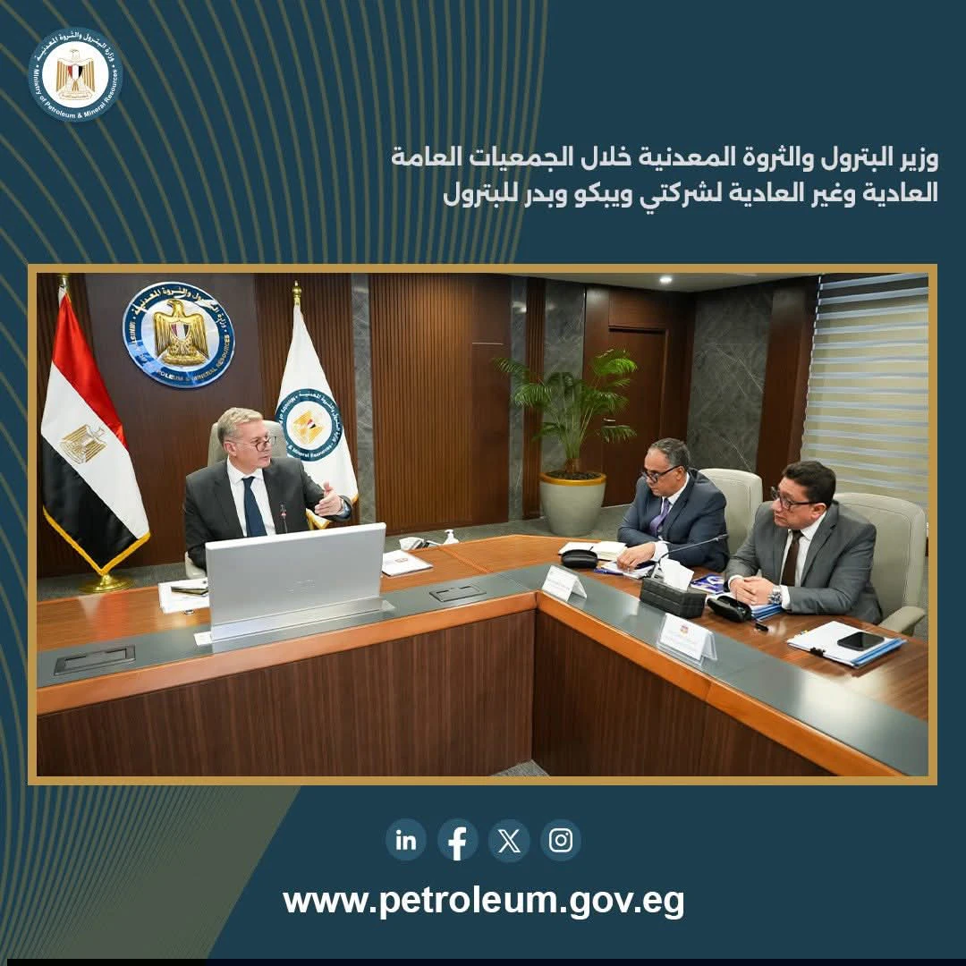 جاء ذلك خلال أعمال الجمعيات العامة العادية وغير العادية لشركتي بترول الصحراء الغربية «ويبكو » و بدر للبترول، حيث اعتمدت الجمعية العامة غير العادية لشركة «ويبكو» الموازنة المعدلة للعام المالي 2025/2026 بعد استحداث نشاط تخزين وتداول الخام والمنتجات البترولية بميناء الحمراء بمدينة العلمين الجديدة، بما يسهم في زيادة إيرادات الشركة.