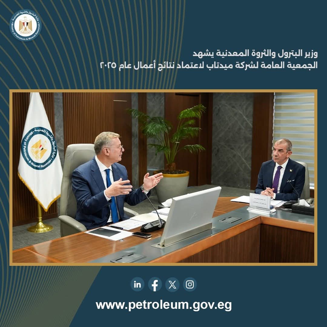 وزير البترول يشهد أعمال الجمعية العامة لشركة «ميدتاب» لاعتماد نتائج أعمال 2025