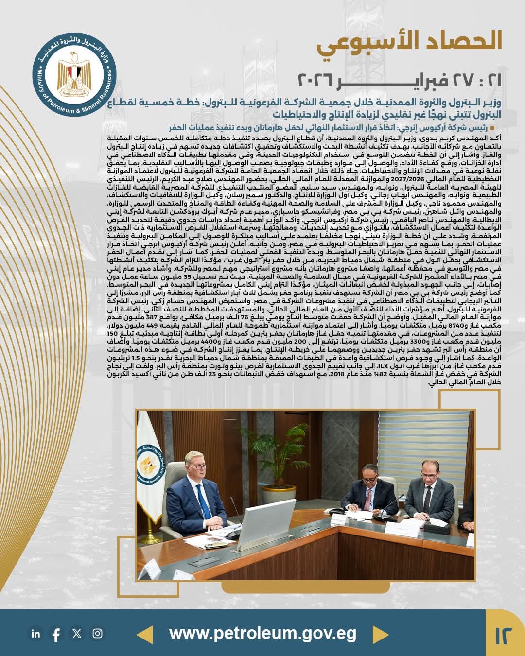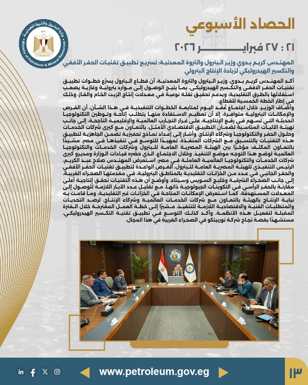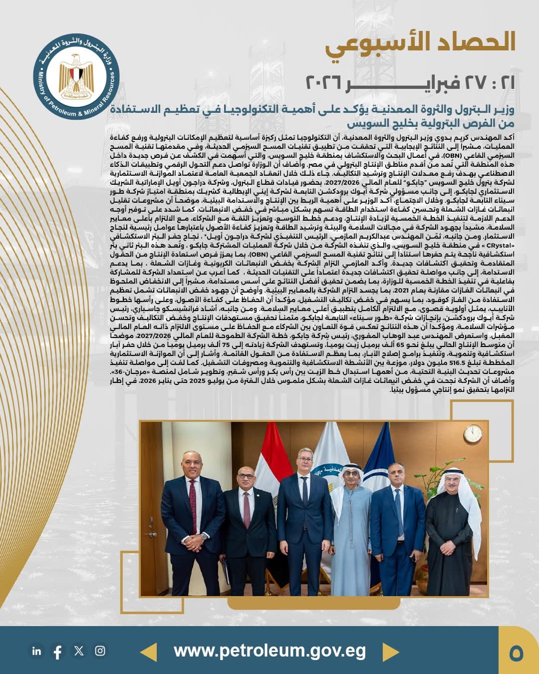 • مصدر الخبر: الصفحة الرسمية لوزارة البترول والثروة المعدنية