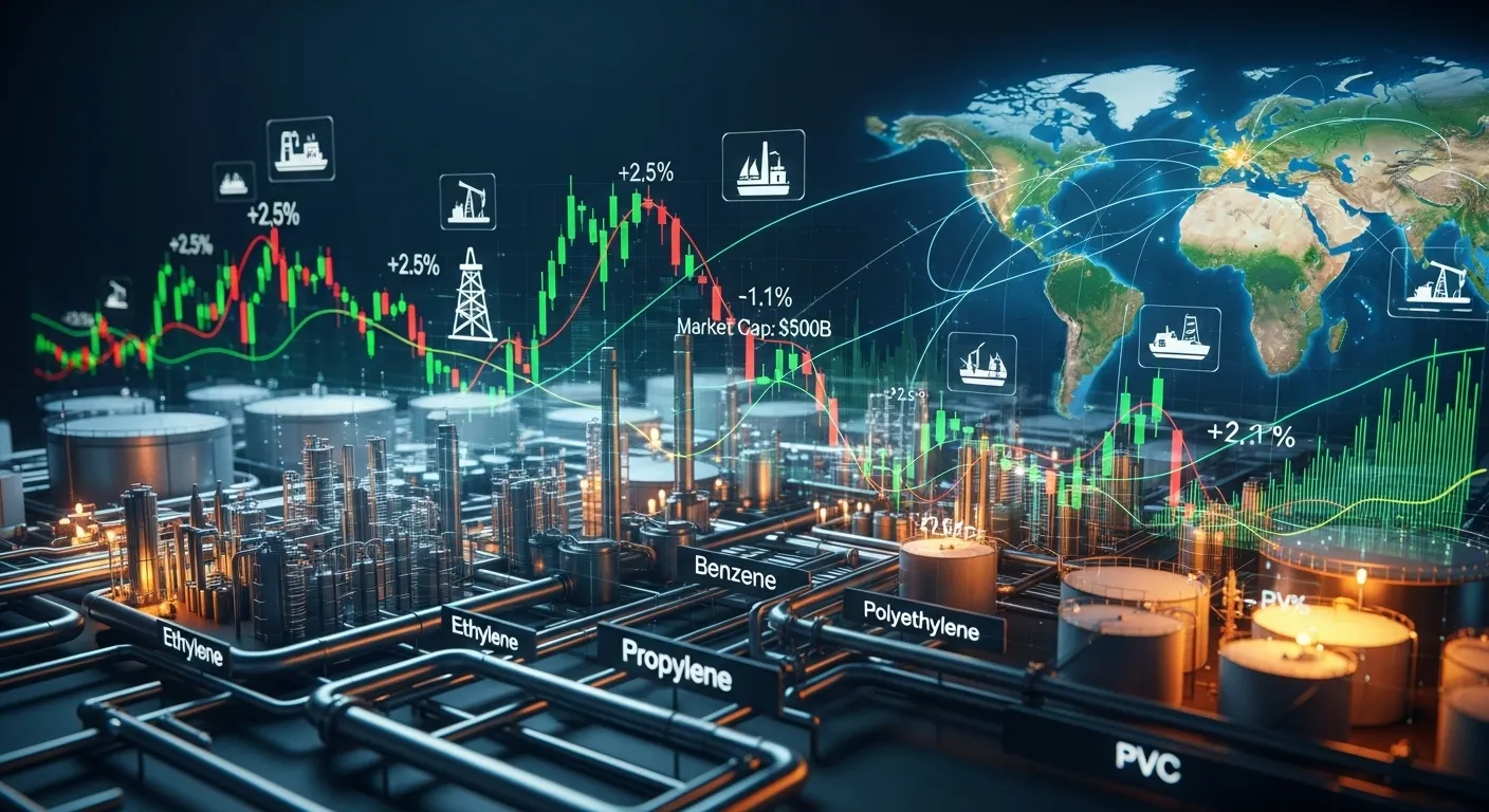 يُعد الإيثيلين المادة الخام الأكثر استهلاكاً على مستوى العالم. وفي عام 2026، من المتوقع أن تصل القيمة السوقية الإجمالية للبتروكيماويات إلى نحو 723 مليار دولار.
