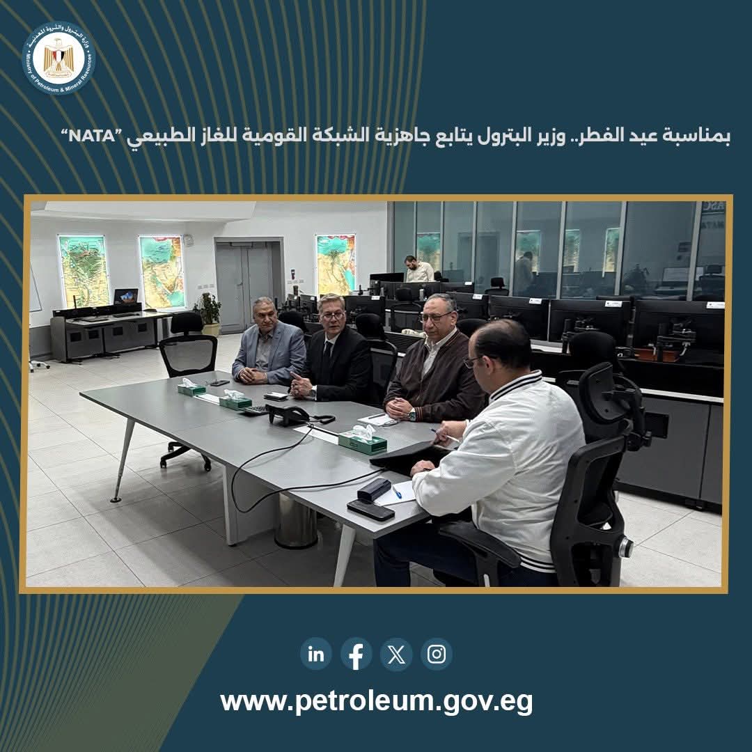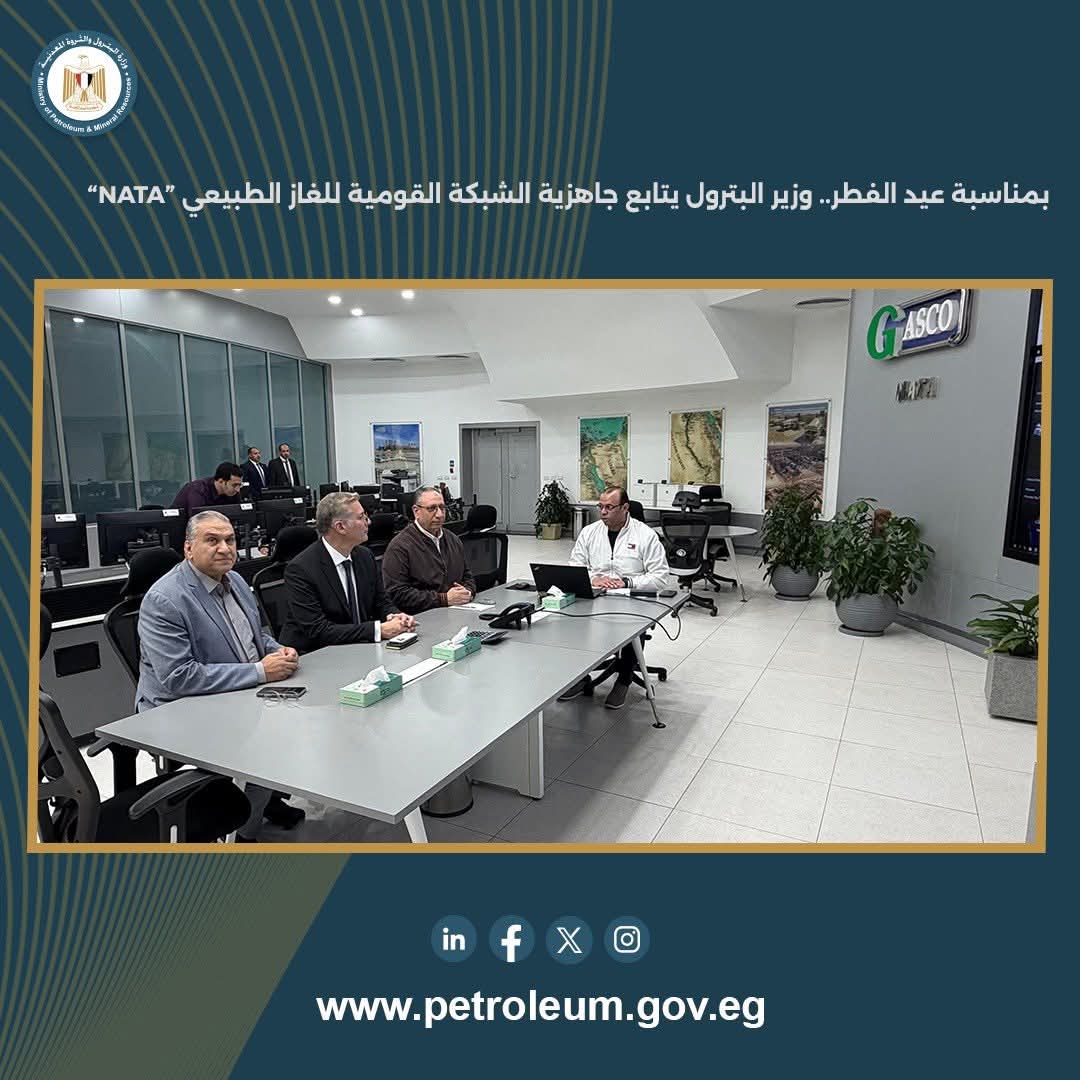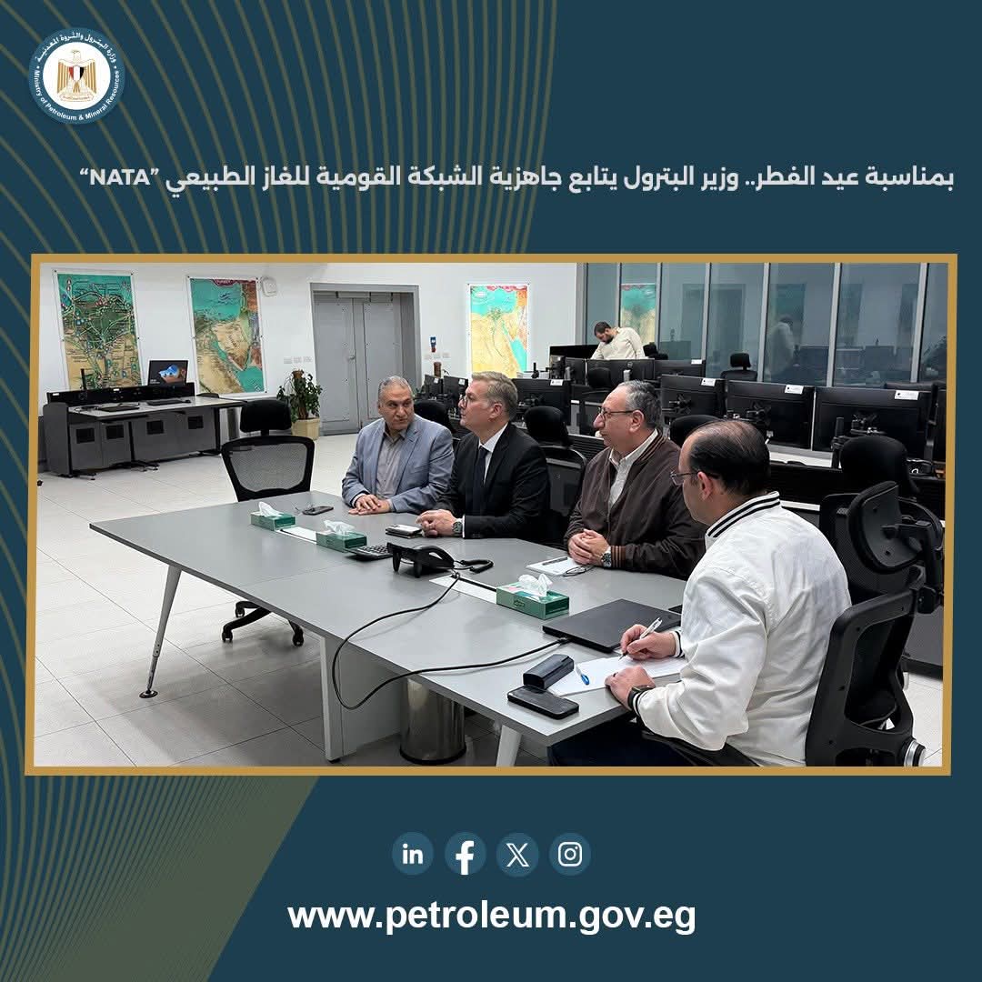 بمناسبة عيد الفطر، تابع المهندس كريم بدوي وزير البترول والثروة المعدنية، جاهزية الشبكة القومية للغاز الطبيعي “NATA”.
