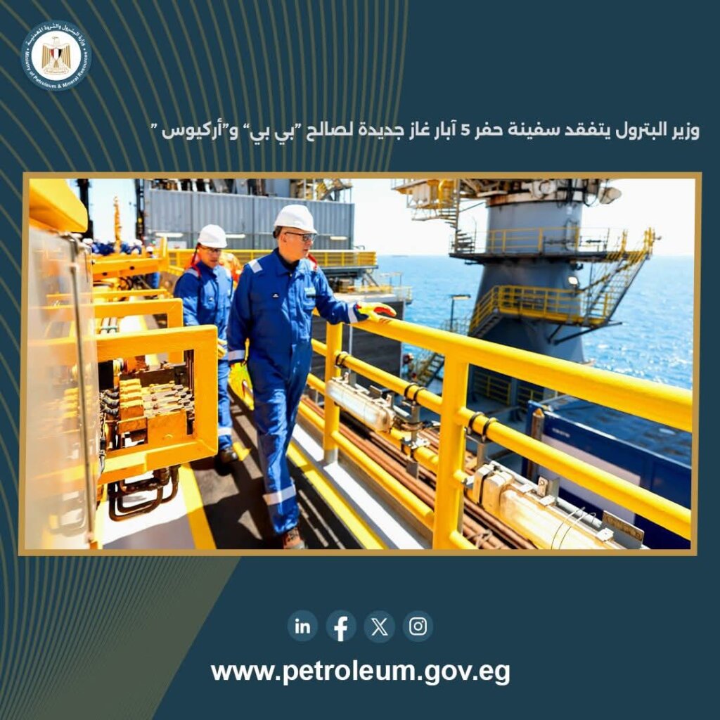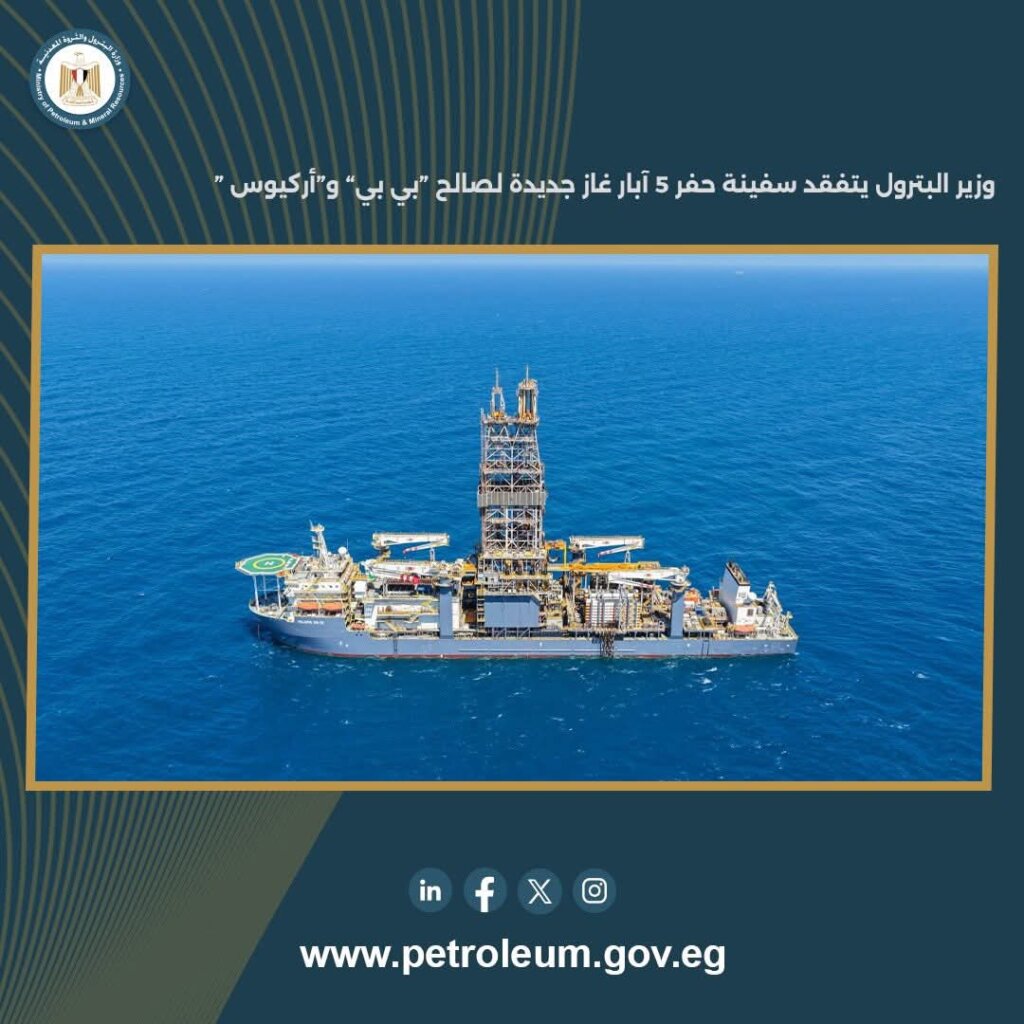 وزير البترول يتفقد سفينة حفر 5 آبار غاز جديدة لصالح “بى_بي” و”أركيوس”