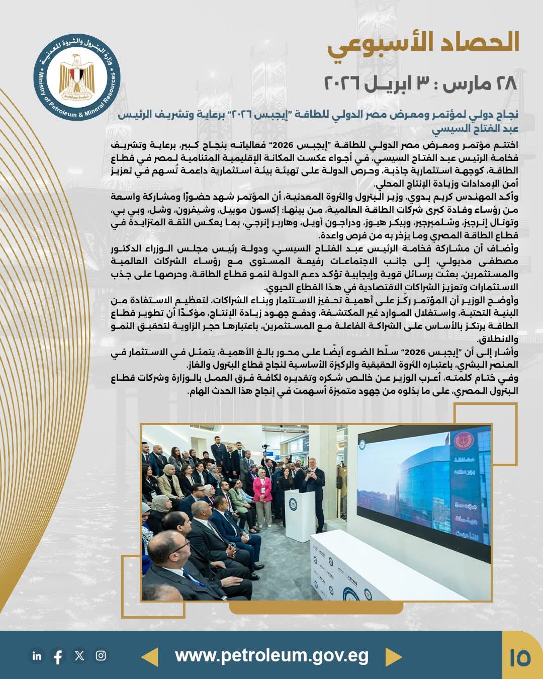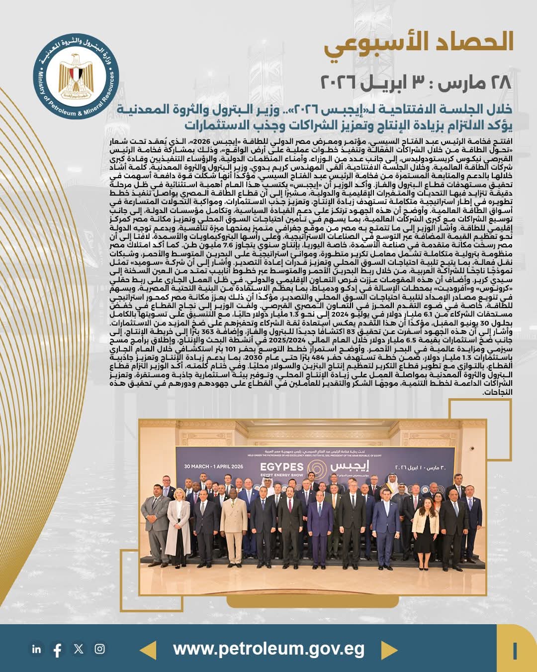 • مصدر الخبر: الصفحة الرسمية لوزارة البترول والثروة المعدنية