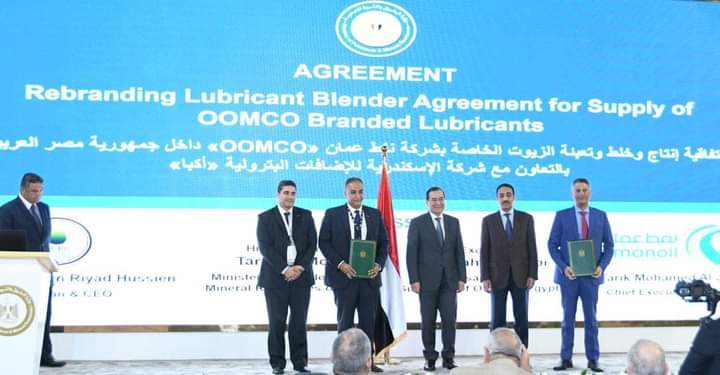 كما تم بحضور السفير العماني بالقاهرة عبدالله الرحمي توقيع اتفاقية تصنيع و خلط وتسويق لمنتجات زيوت التشحيم لشركة نفط عمان العمانية للتسويق بالتعاون مع شركة مصر للبترول، وقع الاتفاق رئيس شركة مصر للبترول المهندس محمد ماجد مع السيد طارق الجنيدي رئيس نفط عمان للتسويق .